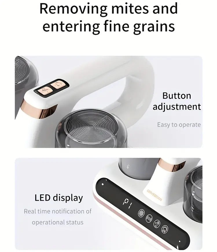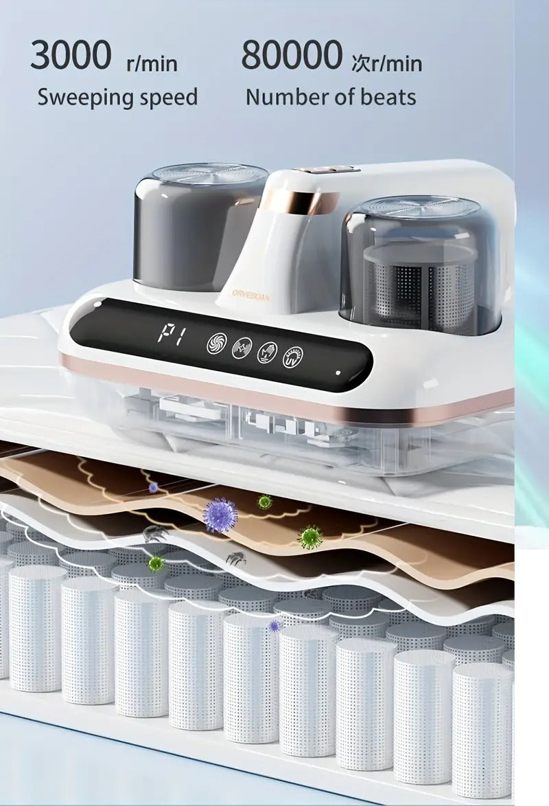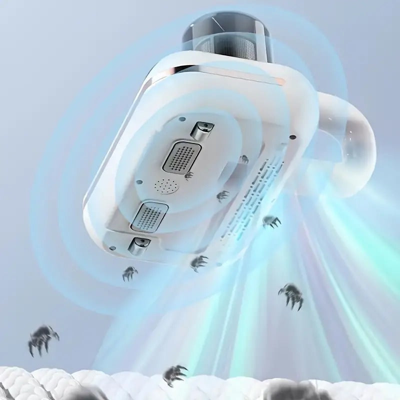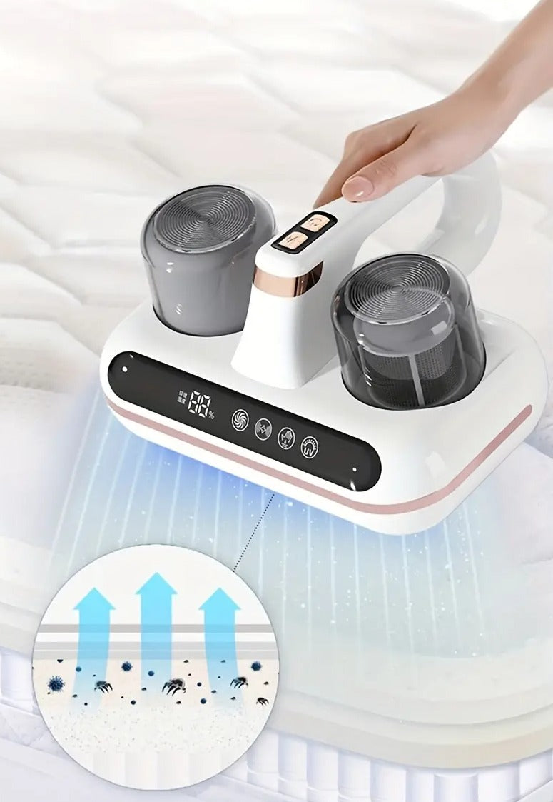 Lleva la higiene de tu hogar al siguiente nivel con la Aspiradora Mata Ácaros Deluxe, equipada con una succión profesional de 10,000Pa y esterilización UV que elimina el 99.99% de alérgenos. Gracias a su motor de 100W y una fuerza de vibración de 80,000 veces por minuto, esta unidad inalámbrica desprende y absorbe hasta el polvo más profundo en camas, alfombras y cunas.