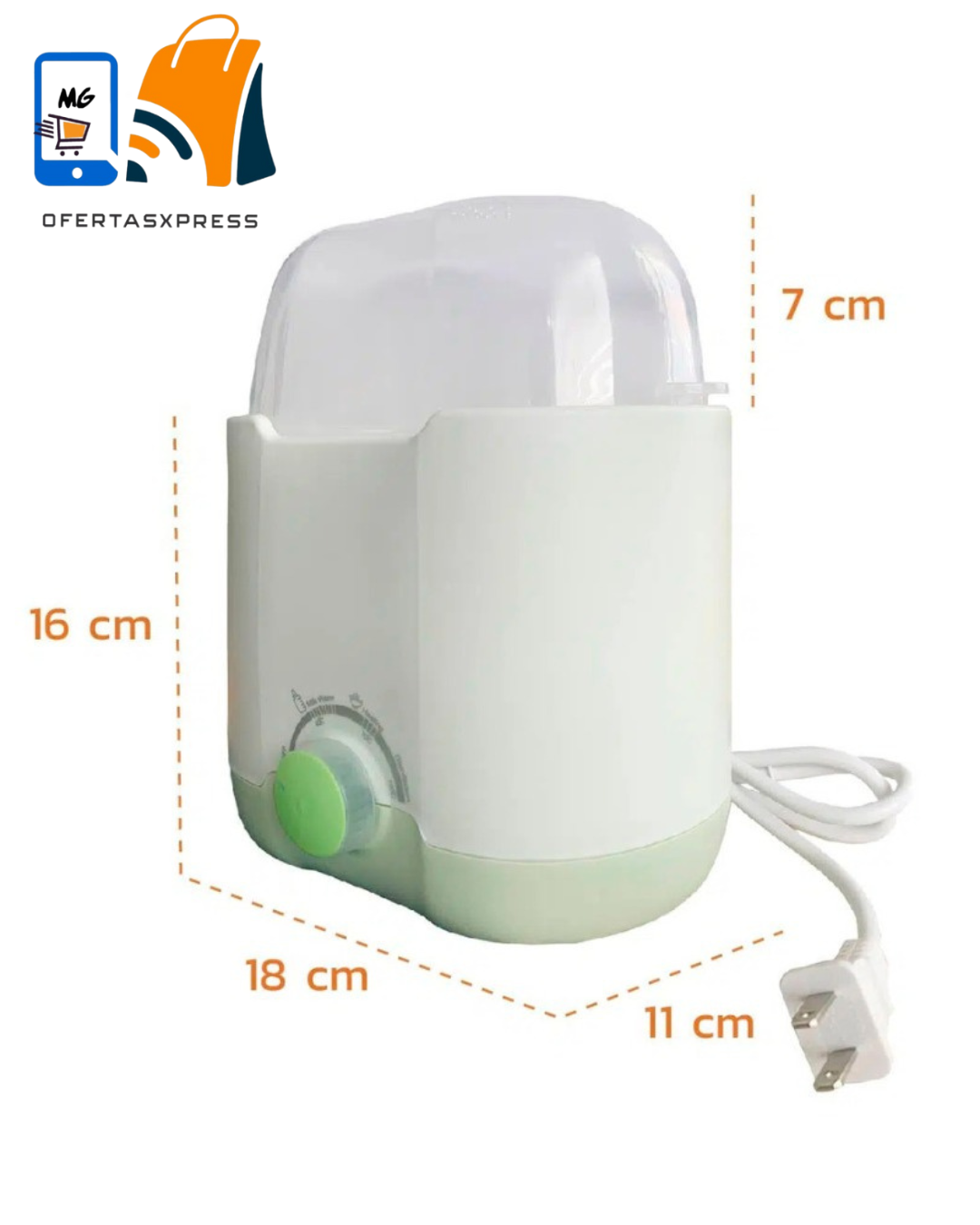 Cuenta con control de temperatura ajustable (40°C, 70°C y 100°C), ideal para mantener la leche a la temperatura perfecta, esterilizar utensilios o desinfectar con vapor, eliminando bacterias y virus de manera natural. 🌟 Características principales: ✅ 3 funciones en 1: calienta, esteriliza y desinfecta. ✅ Temperatura ajustable: 40°C (mantiene tibio), 70°C (calienta rápido), 100°C (esteriliza a vapor). ✅ Uso universal: compatible con todo tipo de biberones y envases. ✅ Sistema automático de seguridad: apagado inteligente al finalizar el ciclo. ✅ Diseño compacto y moderno, fácil de limpiar y transportar.